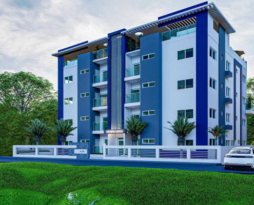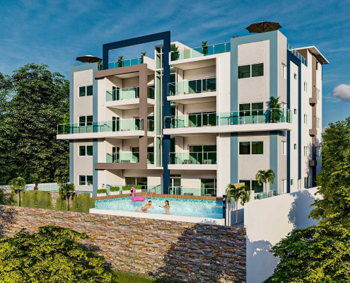 We are building an exclusive residential house with 8 comfortable and spacious apartments in Luperón (Dominican Republic). Construction is scheduled to start in 2024 and to be completed in 2025. The property has an unobstructed view of the Atlantic Ocean and is located on a road with little traffic, which within 500m directly leads to the beautiful beach Playa Grande. On this website you will find details about the building project. If you are interested in investing or have any questions, just give us a call or order further information without obligation by email. We speak English, Spanish, German and French.